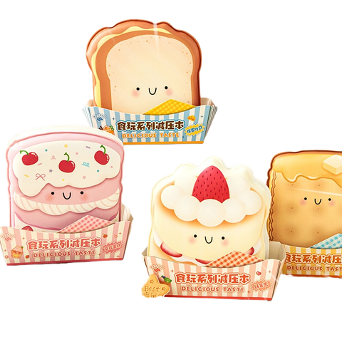 नरम बच्चों के कार्टून भोजन नाटक अपसंपीड़न हैंडबुक सुंदर रोटी टोस्ट आकार पिन संगीत पुस्तक स्व-चिपकने वाला कागज